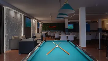 Este lugar ofrece tumbonas y quitasoles en la playa popular dorada. Podrás disfrutar haciendo windsurf, esnórquel y submarinismo en sus instalaciones. También podrás relajarte en un centro de bienestar junto con baño de vapor turco, un solárium y una piscina exterior.